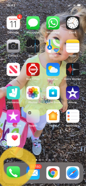 To add a number manually (where you will be typing in the person’s name and number), simply find the phone icon located on your main screen (see yellow circled icon below left). When you select it, your existing contacts list will appear. In top right of screen, find the “+” button (see yellow circled icon below, right, and please excuse the messy scribbling to obscure full names of contacts)