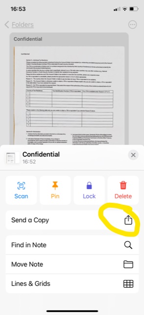 You can save this file as a PDF. You can find it by searching in your Notes.