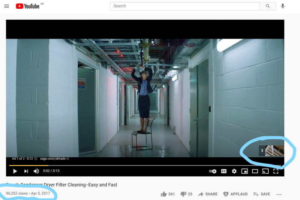 You can also see when the video was uploaded (see below left, circled). You may need a recent video if you are looking for a tutorial for something that has recently changed. In this case, the video from 2017 is still valid as instructions for changing the lint cartridge on my new dryer.