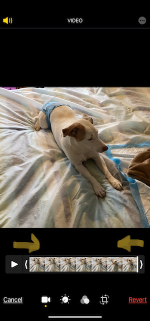 - Use your fingertip to slide the arrows on either side of the timeline to trim any bits you don’t want from the beginning or end of your video.