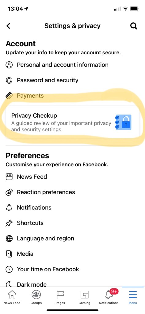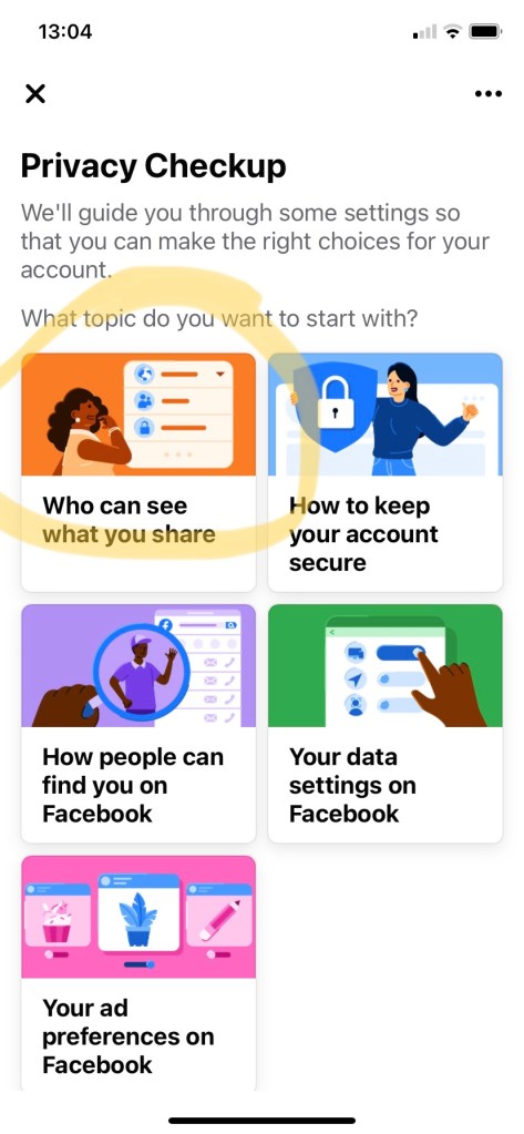 Notice I put this step right after opening your account rather than as a footnote. Why? Because you want to share your news and photos with your friends and family and not with random strangers or worse, scam artists. So do yourself a favor and set your security controls now.