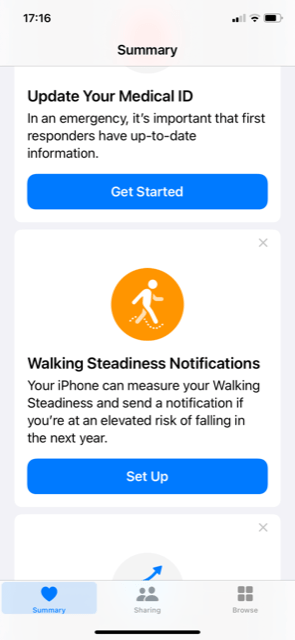 Identifying low steadiness may be indicative of higher likelihood of falling over the next 12 months and might be a good reason to check in with a medical professional. The good news is that with the Apple Health app on your iPhone, it’s easy to get a read on several important measures of your gait.