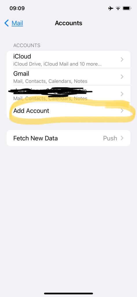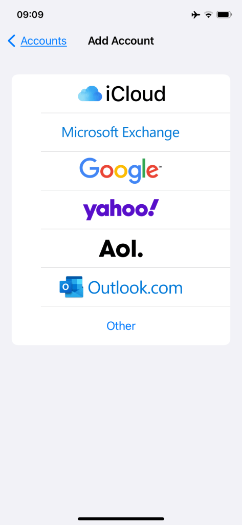 , access the Mail submenu. Select “Accounts” and tap on “Add Account”. Choose the provider and follow the prompts. See below the steps from within Settings.